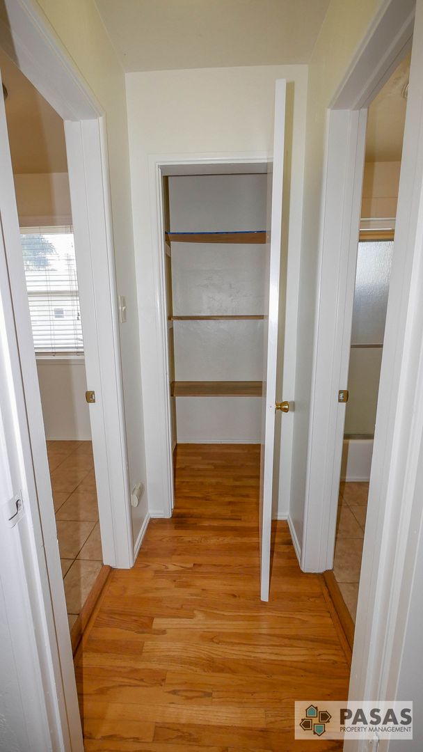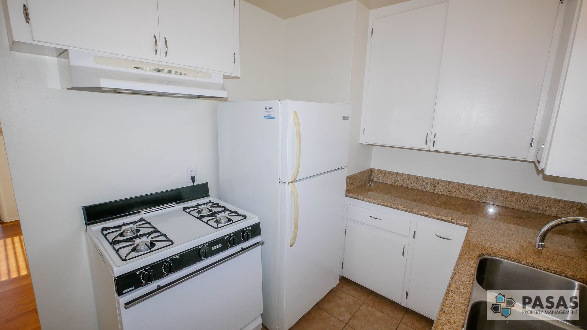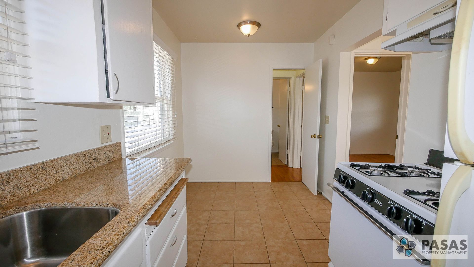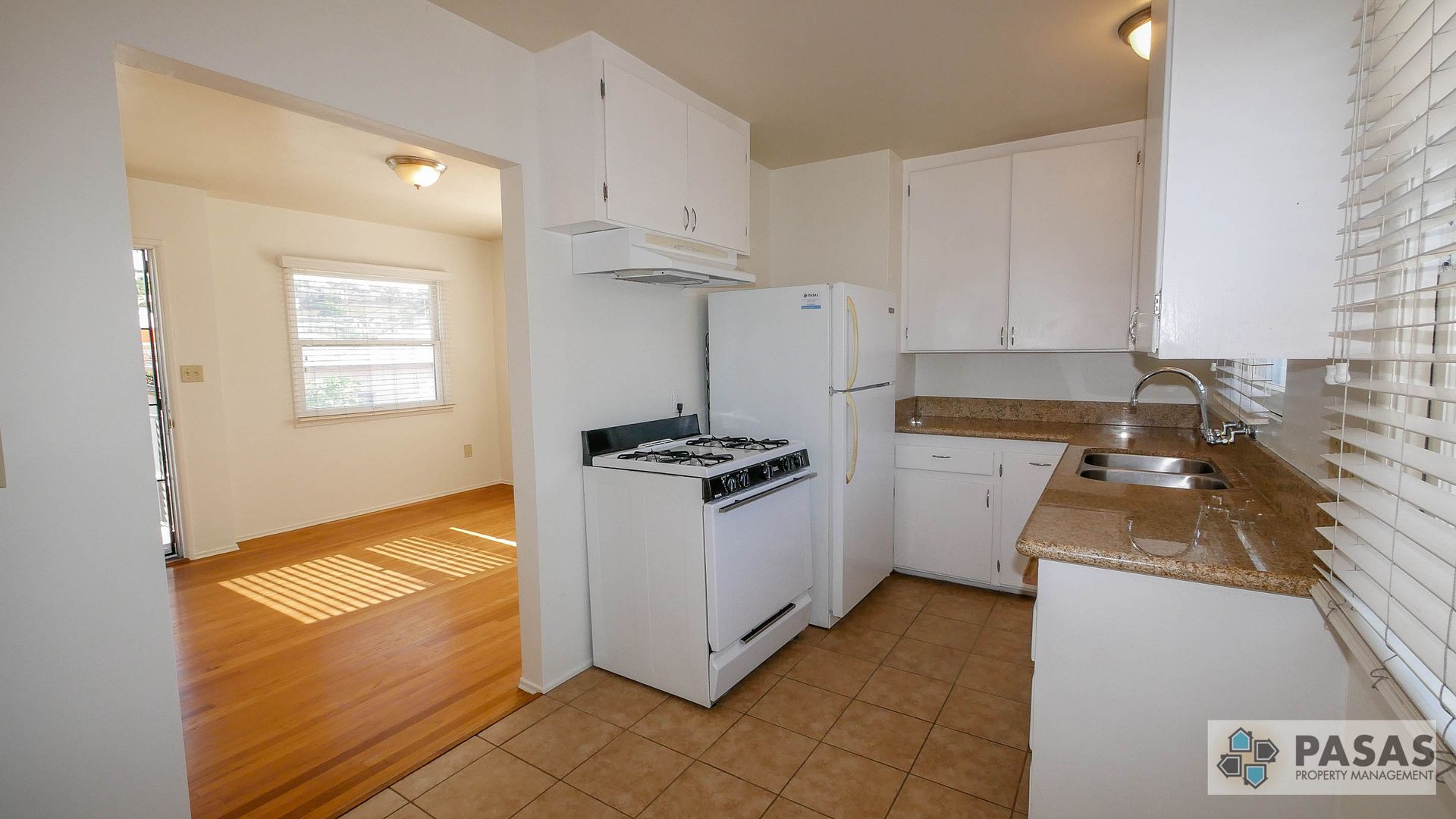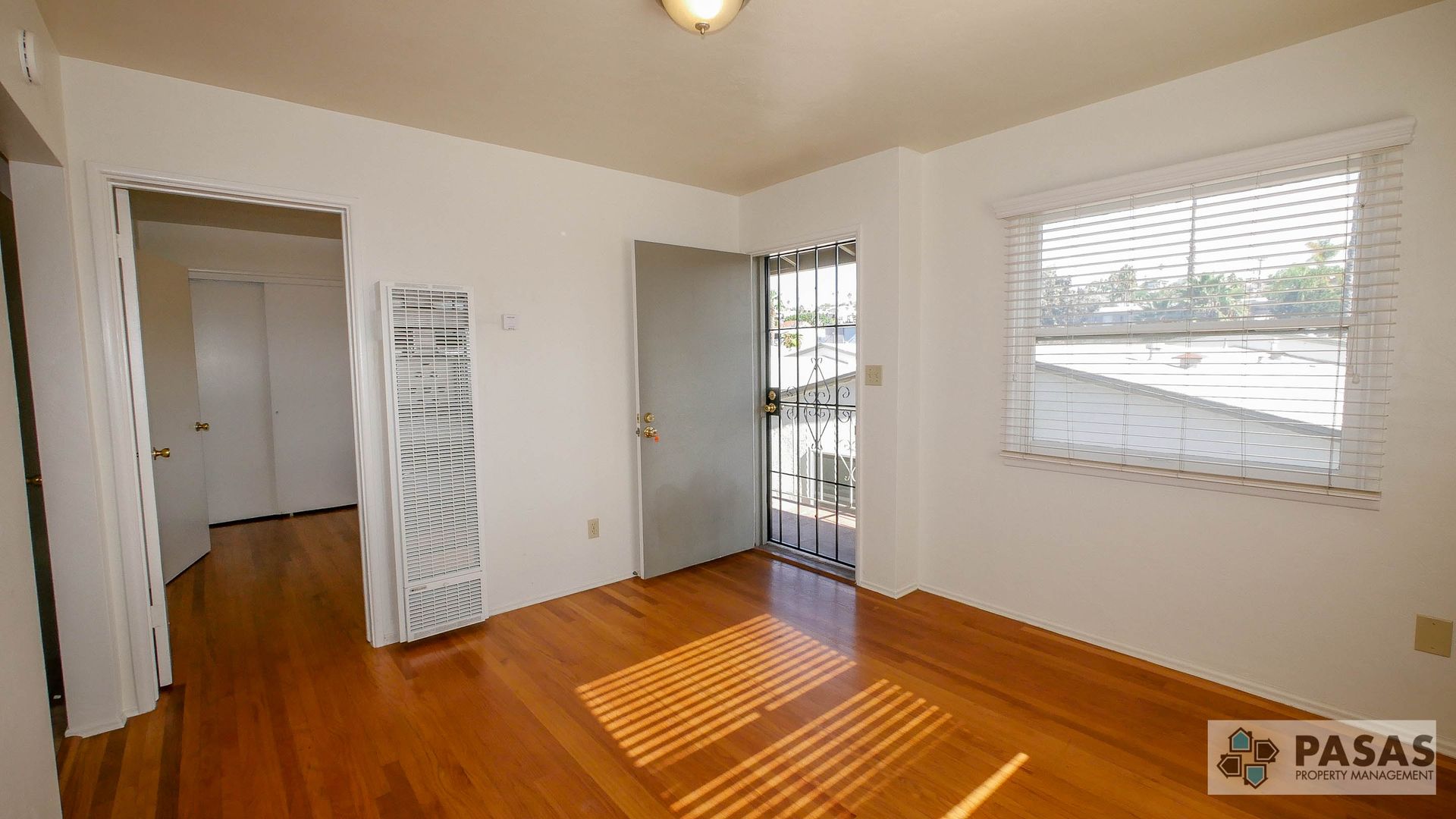 Second floor apartment with real hardwood floors. Freshly painted with dual pane windows and stainless steel appliances. Granite countertops. Only 1 shared wall. Coin-operated community laundry. Close to I-5 freeway, Mission Bay Golf Course, Mission Bay Athletic Area and De Anza Cove.