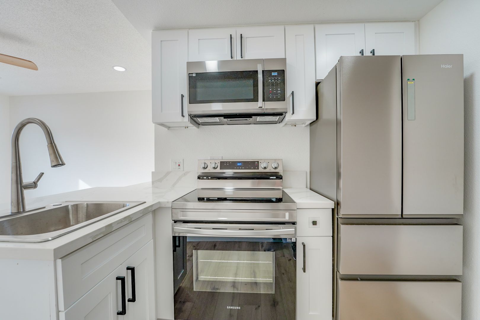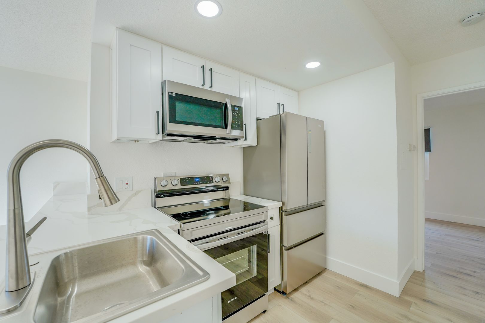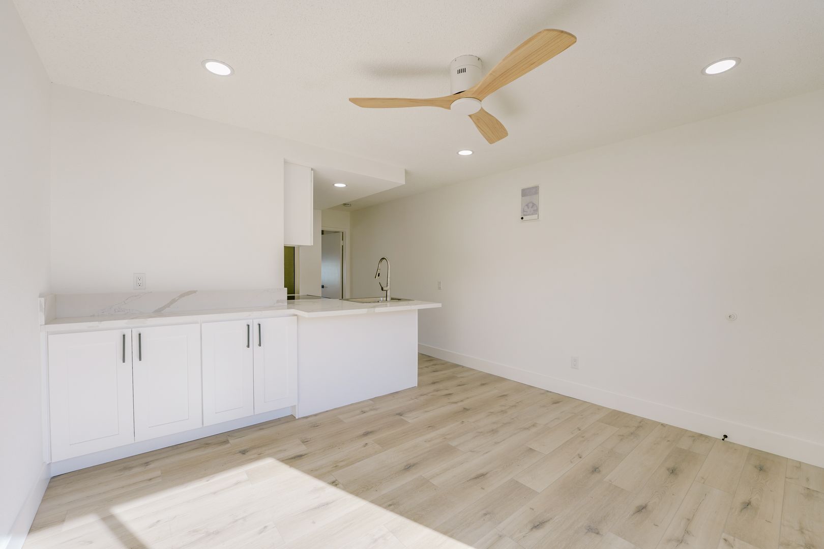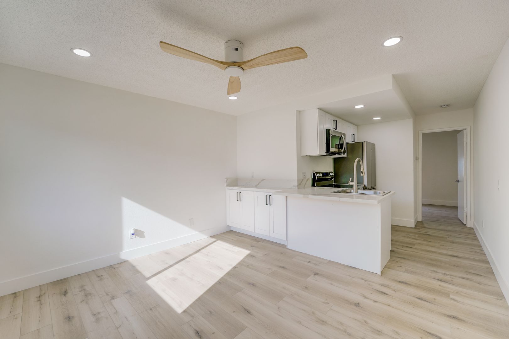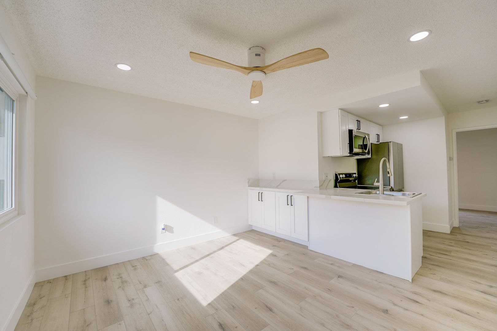 Remodeled kitchen cabinets & countertops. Vinyl plank flooring throughout with NO carpet! Recessed lights and all new dual pane windows, front security door. Ceiling fans in the living room and bedroom.