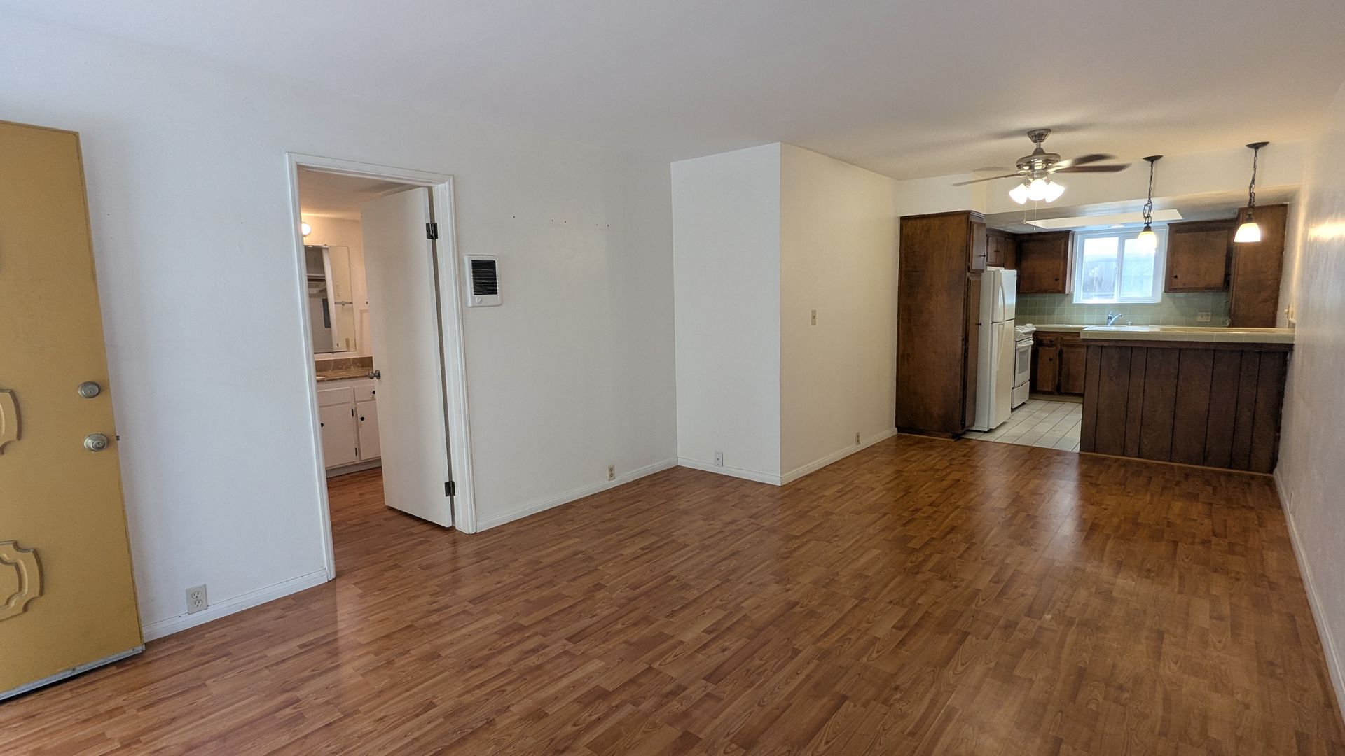 We have a 1 bed, bath 650 sq. ft ground floor apartment available for rent in a 8 unit complex in Pacific Beach. Fresh paint and brand new vinyl plank flooring throughout the unit! Ceiling fans in the dining room and bedroom with 2 hallway closets. The open living room and private patio are perfect for entertaining. Lots of natural light. Water, sewer, trash, & landscaping is included in the rental amount, Walking distance to the beach, restaurants, and shops! This building has shared laundry onsite and a storage locker for each unit
