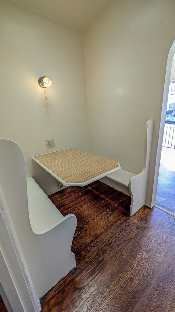The unit has a vintage Spanish bungalow feel with gorgeous hardwood flooring throughout the living room and bedroom. The unit will come with all the things to need to live comfortably, even including a lovely outside courtyard from where you can see the amazing view of Waterman Park!