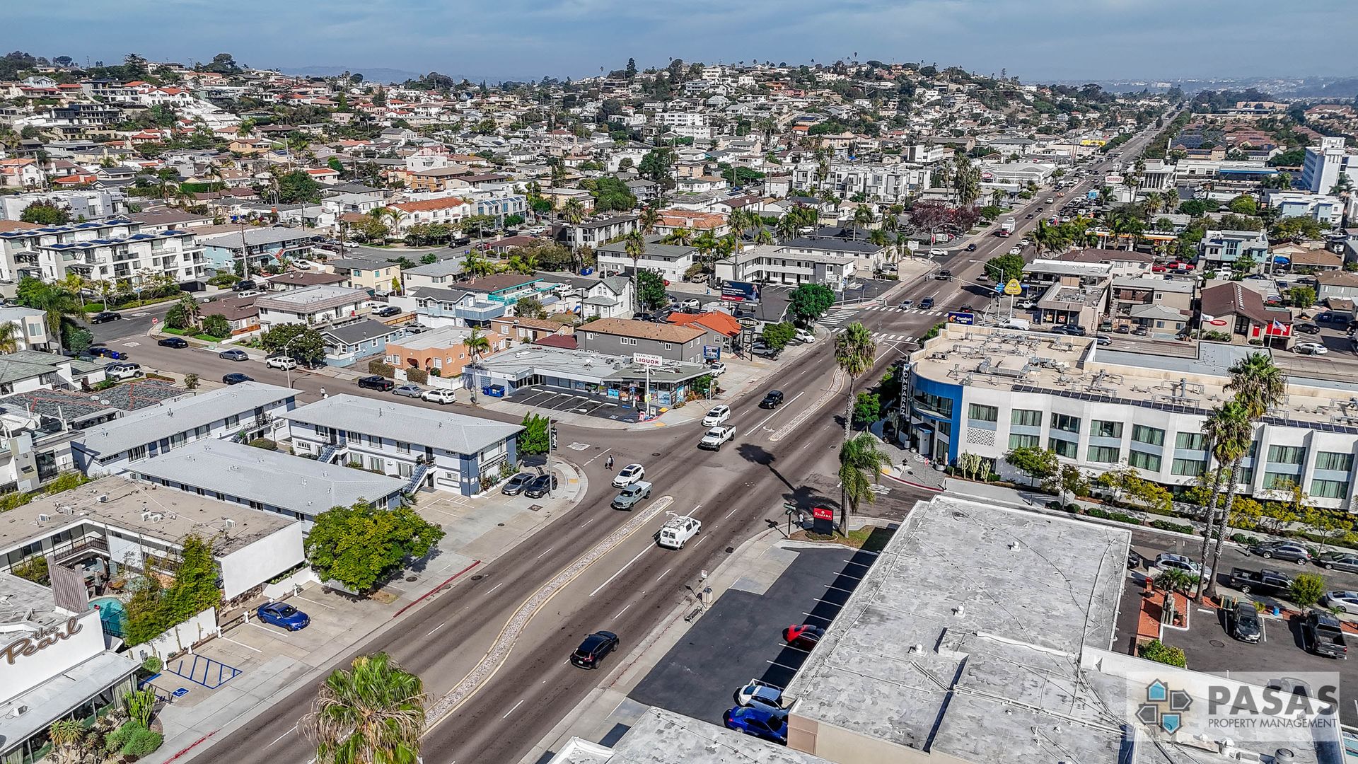 1050 sq. ft retail/office space located 1.5 blocks from San Diego Bay. High traffic area located at Rosecrans St and Garrison St. in Point Loma, next door to Sand and Sea Liquor. Space includes 1 parking space. Tenant tp pay Utilities (water/sewer), SDGE to include exterior lighting and unit interior usage and garbage/recycling. Midcentury exterior design, built in 1960. Available now.