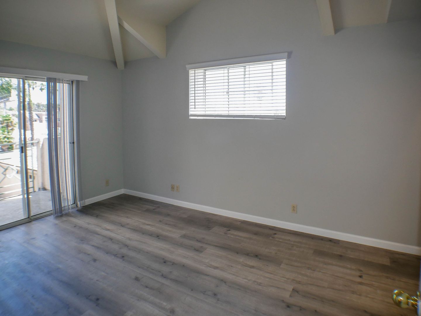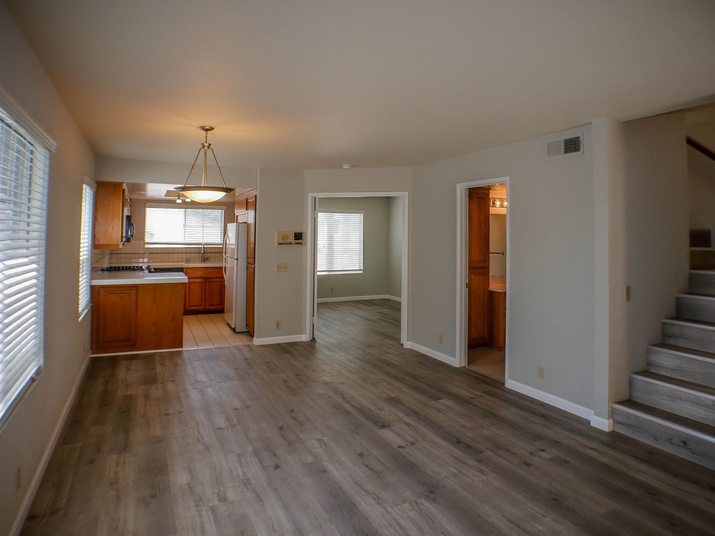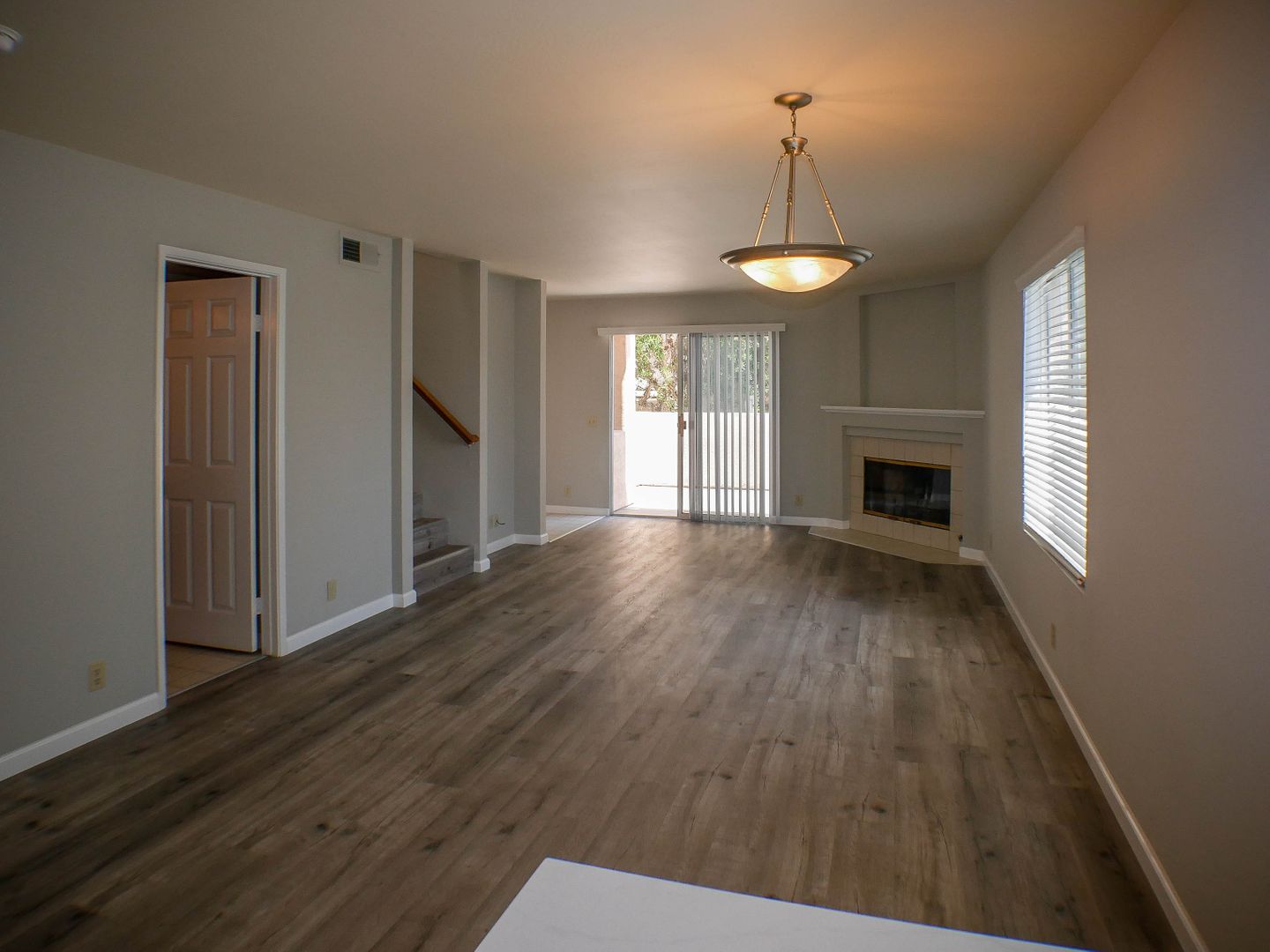We have a newly remodeled 3 bed, 3 bath 1,493 sq. ft townhouse! This multi-level unit features large vaulted ceilings, dining room, a fireplace and multiple patios. Newly updated with quartz kitchen counters, fresh paint, brand new vinyl plank flooring & baseboards, and new window blinds. 2 upstairs master bedrooms with private bathrooms & balconies, and 1 bedroom downstairs with full bath directly outside of it.