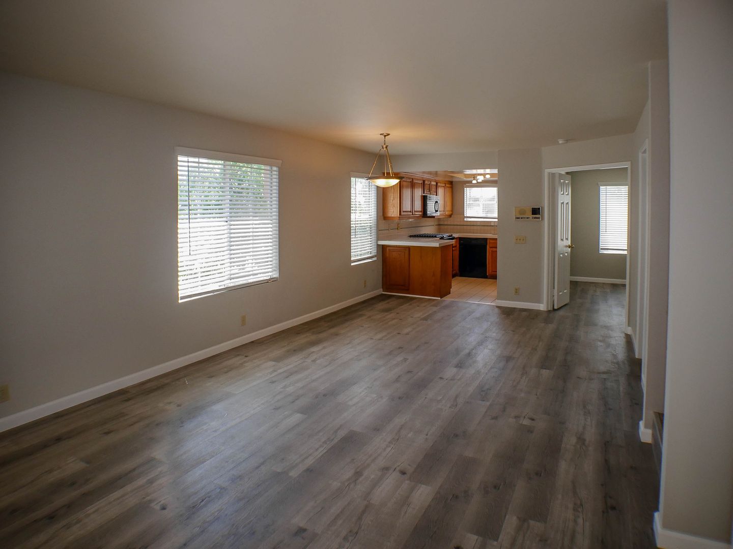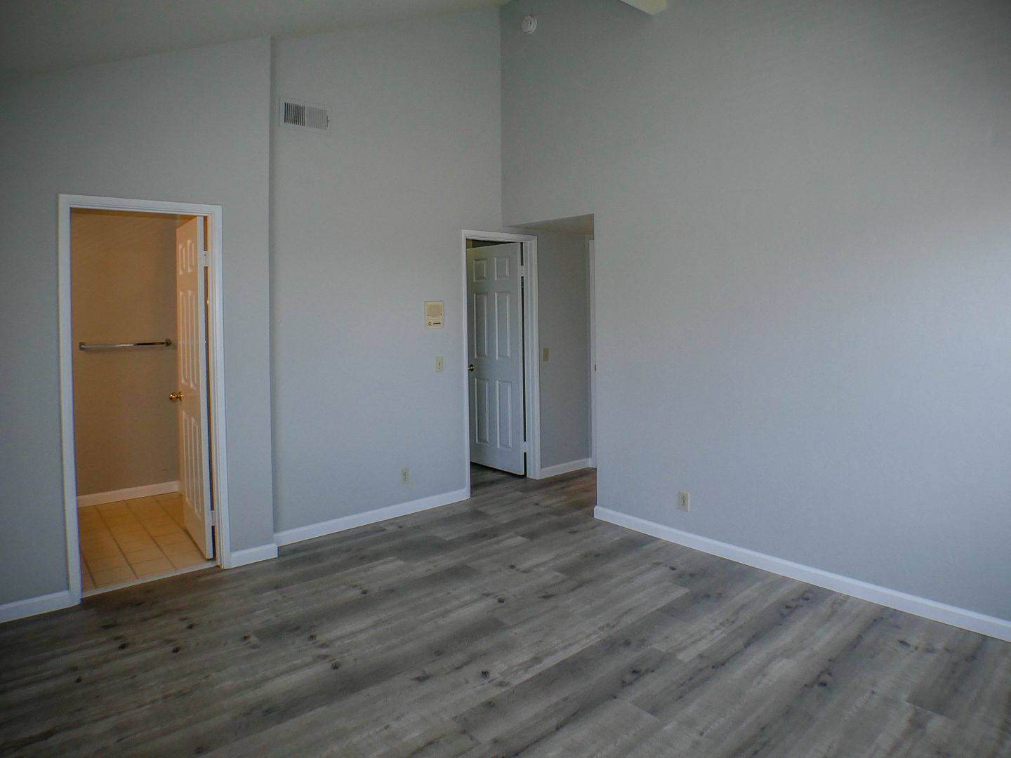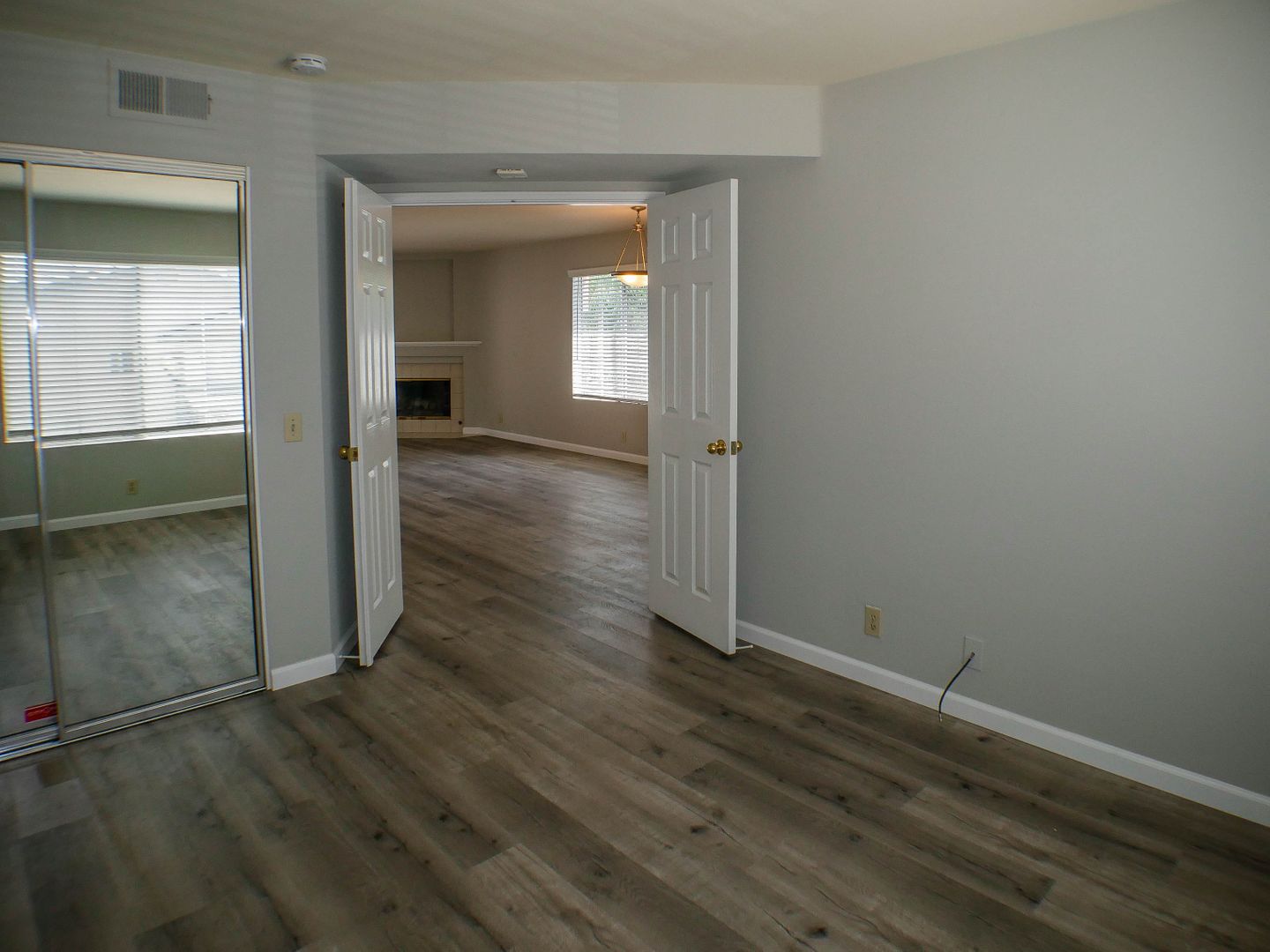 We have a newly remodeled 3 bed, 3 bath 1,493 sq. ft townhouse! This multi-level unit features large vaulted ceilings, dining room, a fireplace and multiple patios. Newly updated with quartz kitchen counters, fresh paint, brand new vinyl plank flooring & baseboards, and new window blinds. 2 upstairs master bedrooms with private bathrooms & balconies, and 1 bedroom downstairs with full bath directly outside of it.
