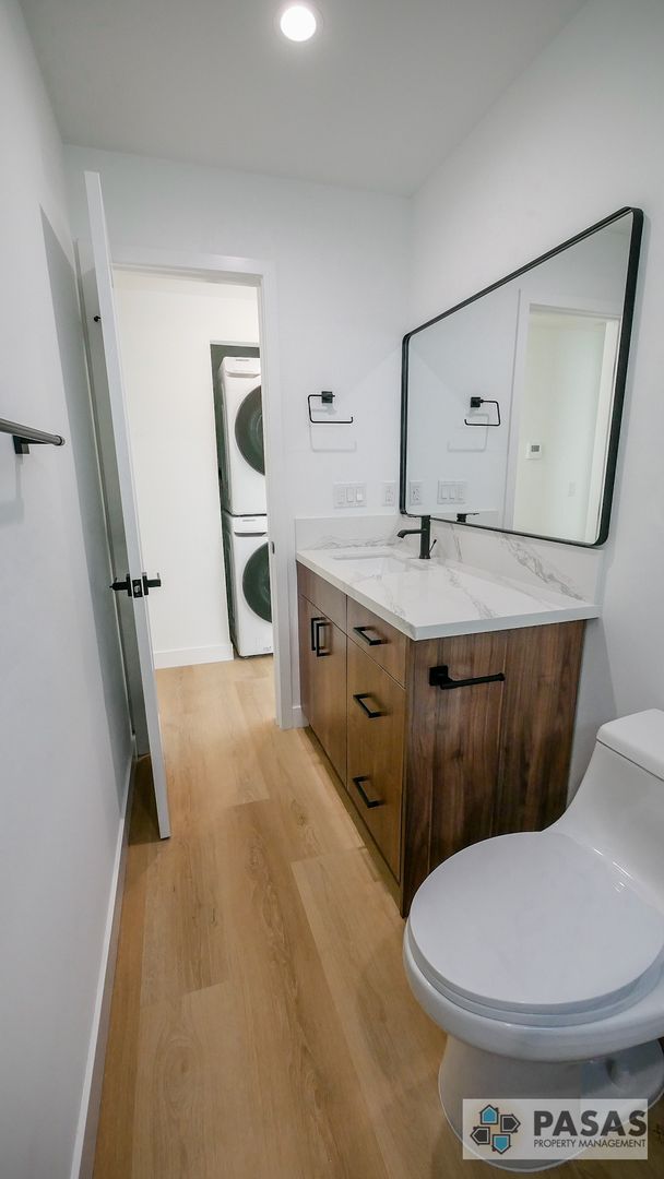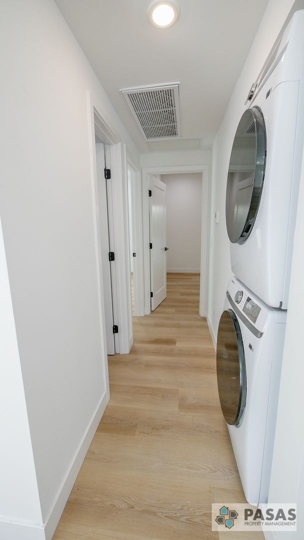 The modern kitchen is outfitted with all brand-new appliances, sleek cabinetry, and plenty of storage, perfect for both everyday living and entertaining. Enjoy the convenience of having your own full-size washer and dryer inside the unit, making laundry effortless.