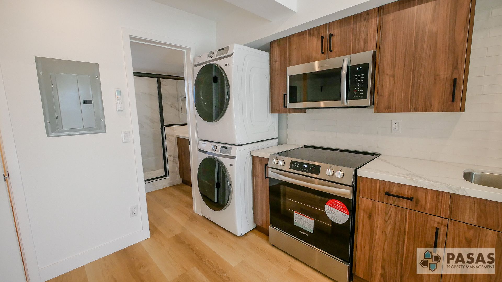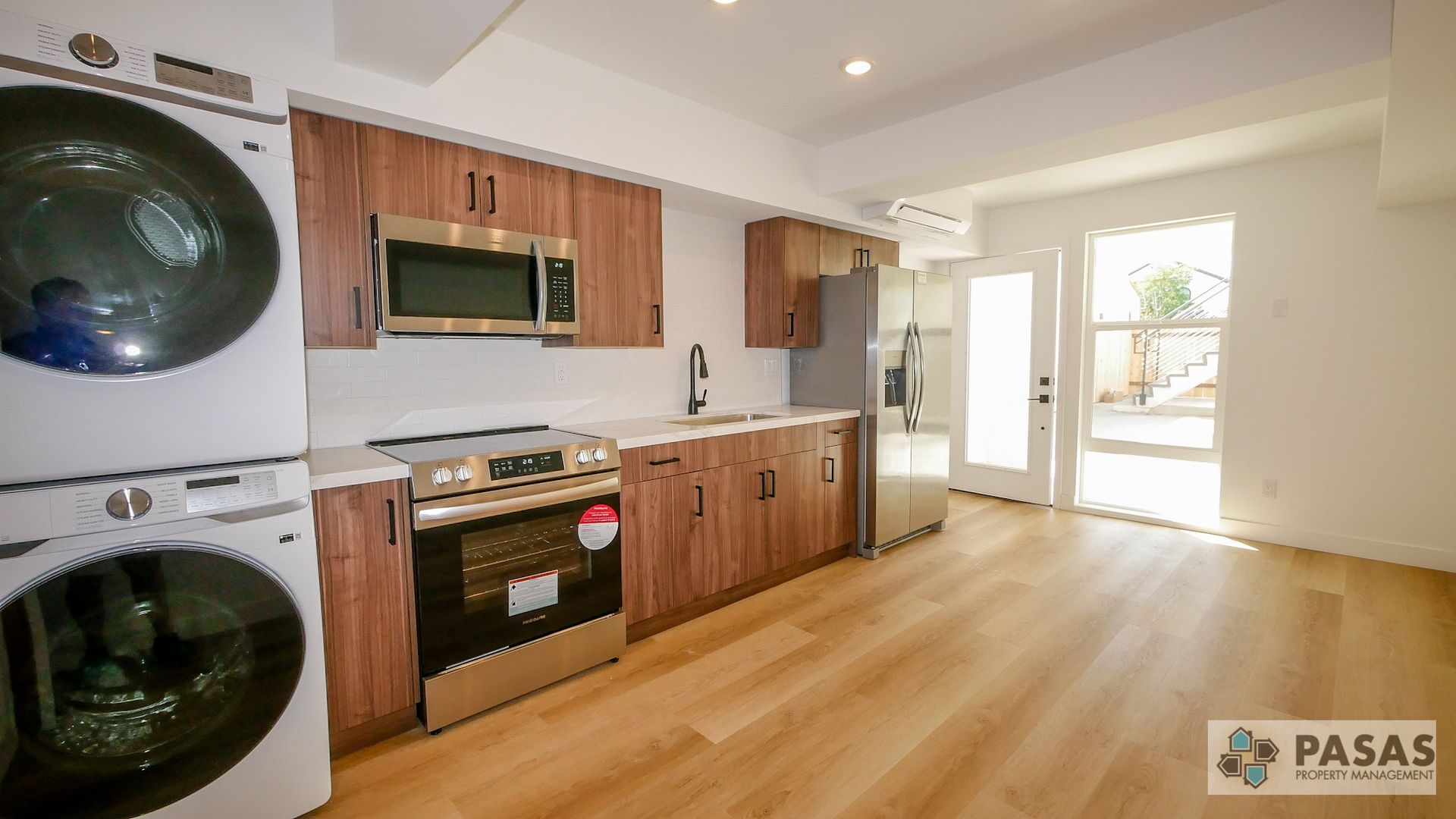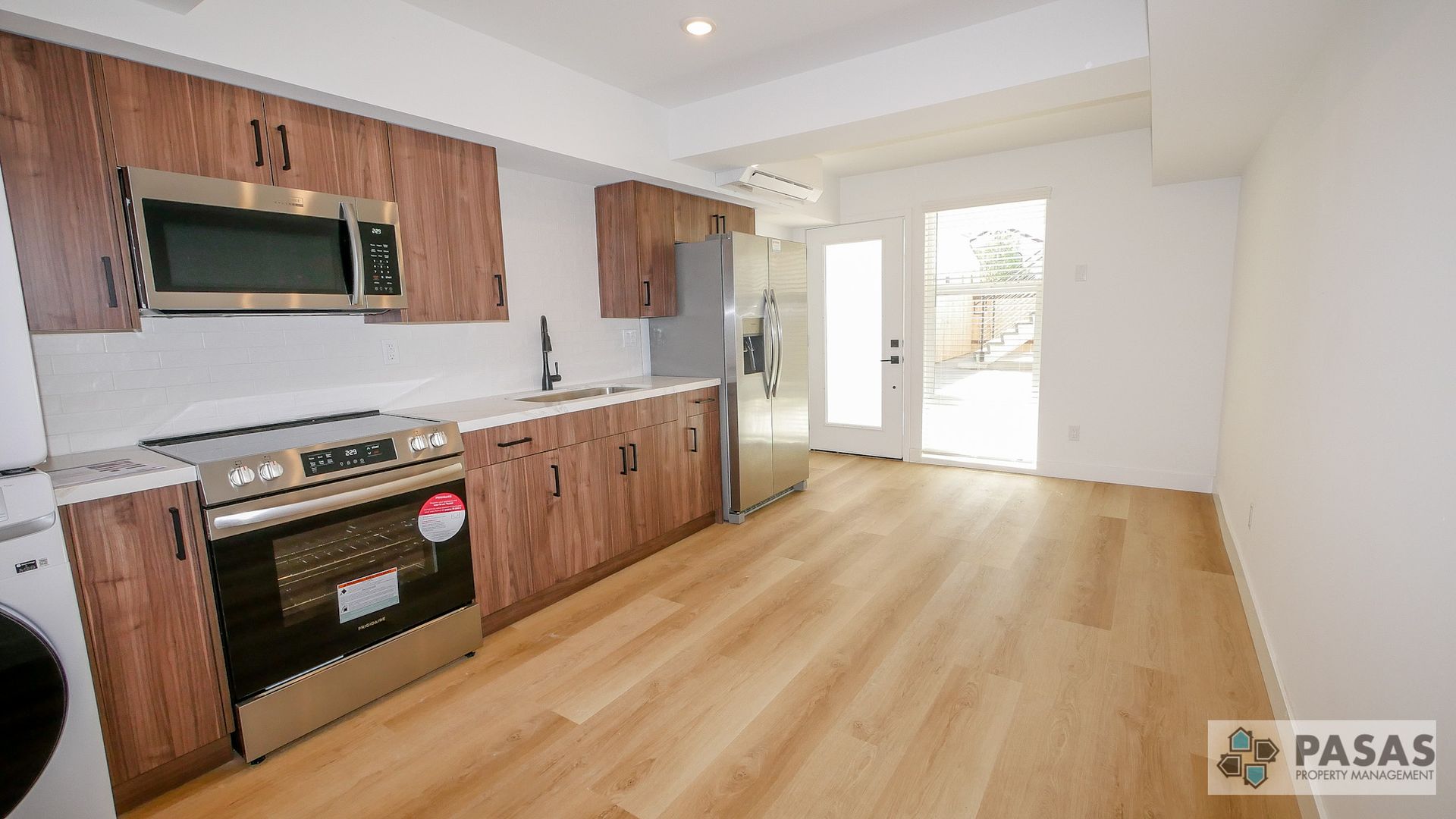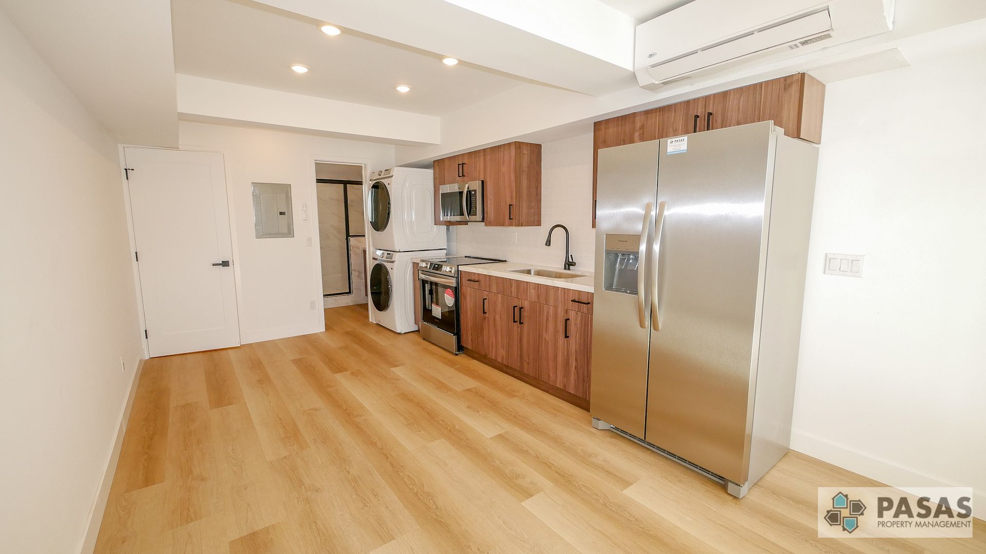 This thoughtfully designed residence features beautiful vinyl plank flooring throughout, creating a clean, modern look that’s both stylish and easy to maintain. The contemporary kitchen is equipped with brand-new appliances, sleek cabinetry, and everything you need for comfortable everyday living. Enjoy year-round comfort with an energy-efficient mini-split HVAC system providing both heating and air conditioning. Washer and dryer in unit for your convenience!