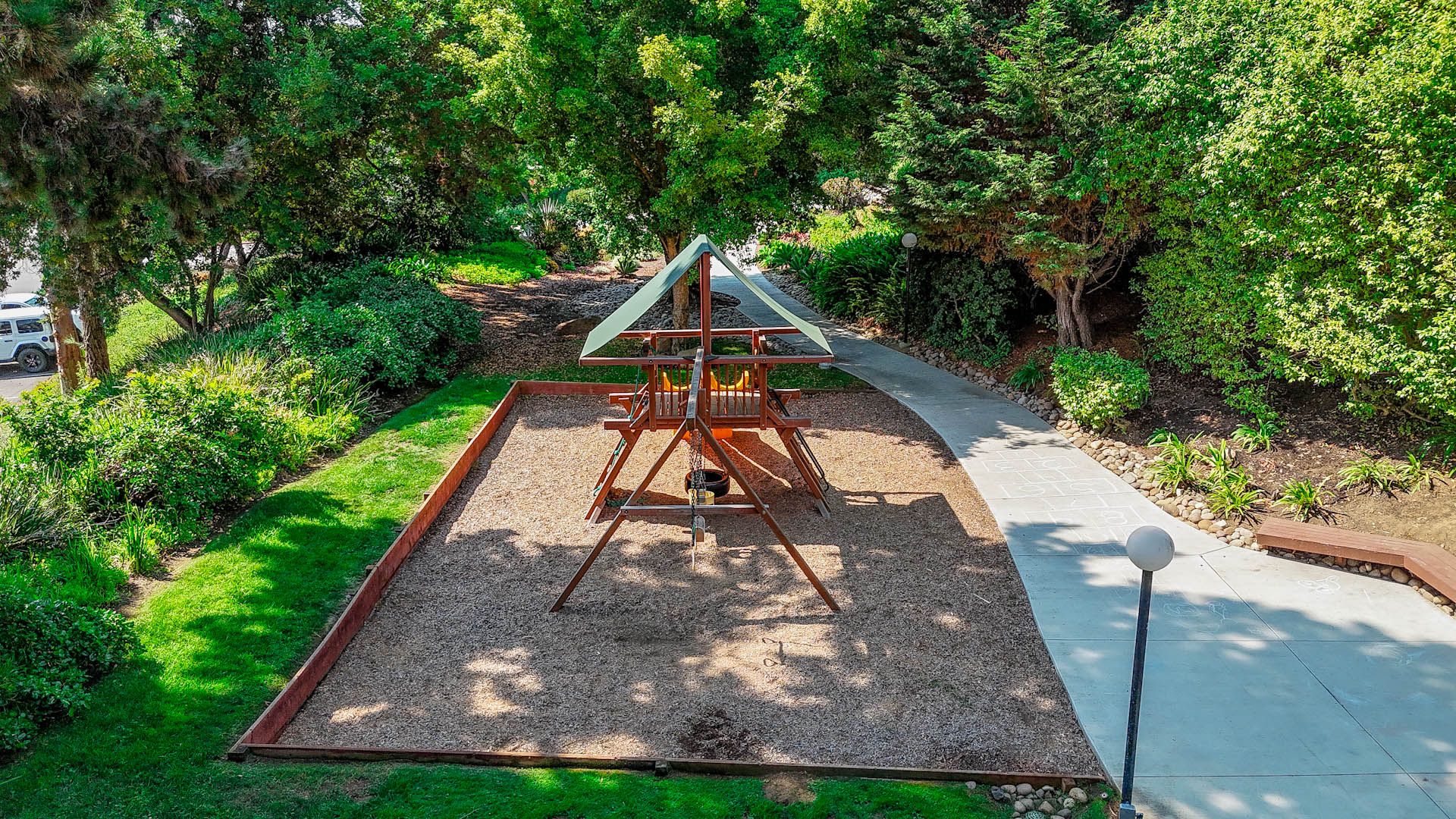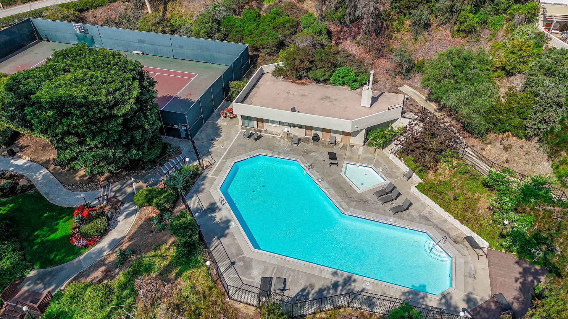 Residents enjoy resort-style amenities, including a swimming pool, small children's wading pool, tennis courts, playground, and scenic walking trails.
